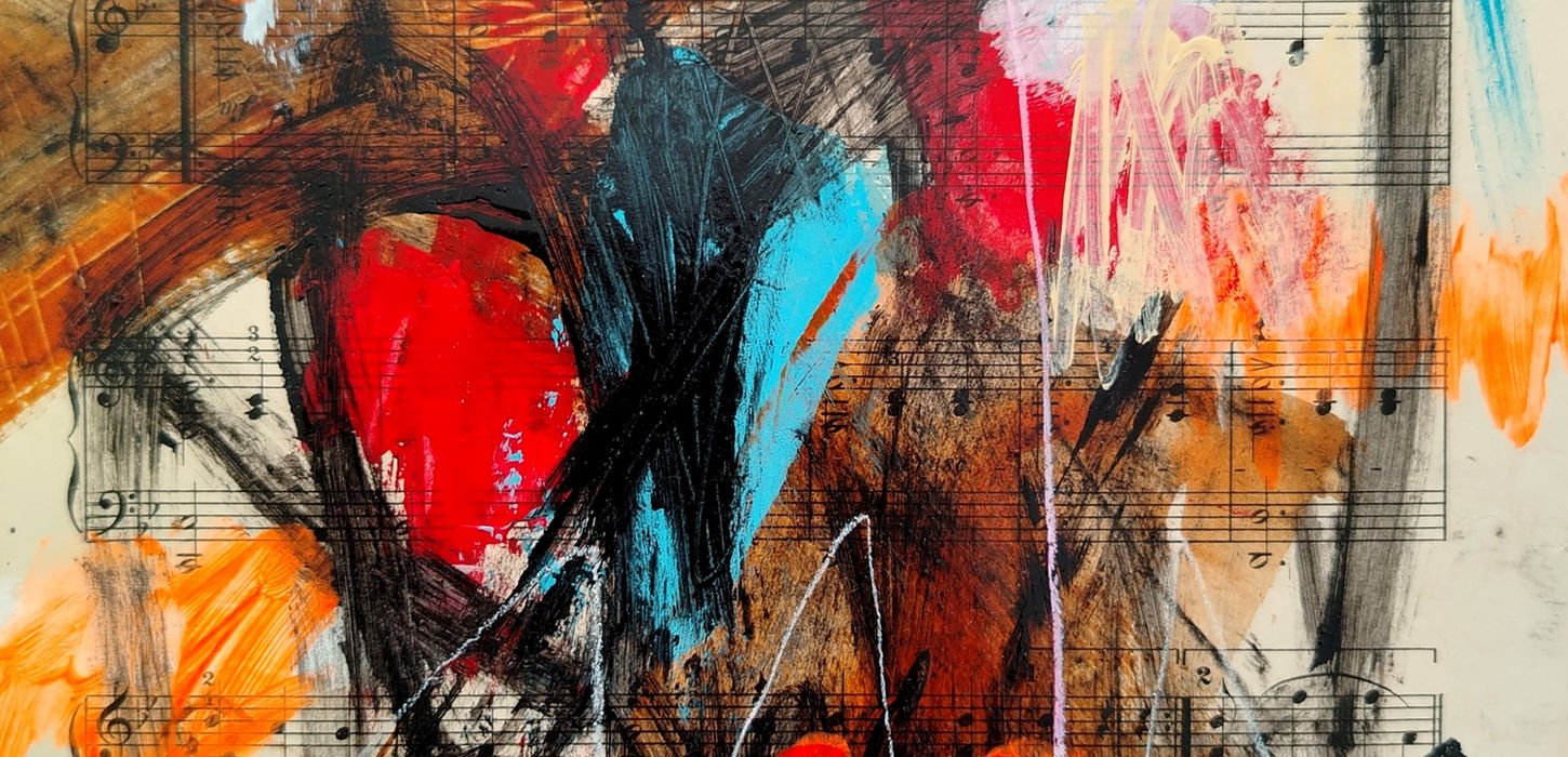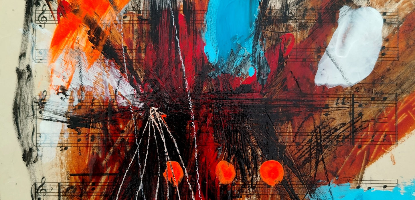 "When You Dance the Son” is a series of 13 mixed-media works painted over original 1930s musical scores. Their naturally aged, yellowed tones create a striking contrast with the vivid enamels and acrylics layered onto each piece. The series is inspired by Son Paulina, a traditional son from the Isthmus of Tehuantepec